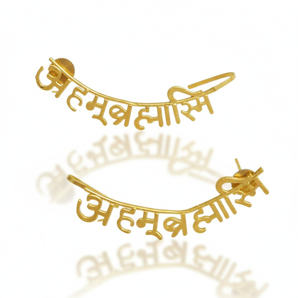 Vrisha Veer symbolizes raw masculine energy and grounded strength. These gold-dyed brass earcuffs feature a...