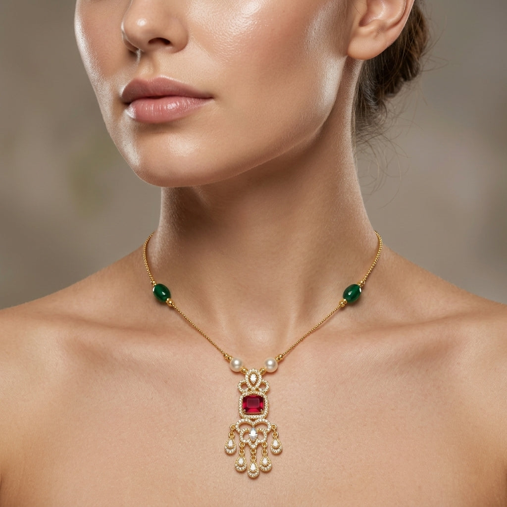 Minimal Luxe American Diamond Pendant Necklace (Gold Plated)