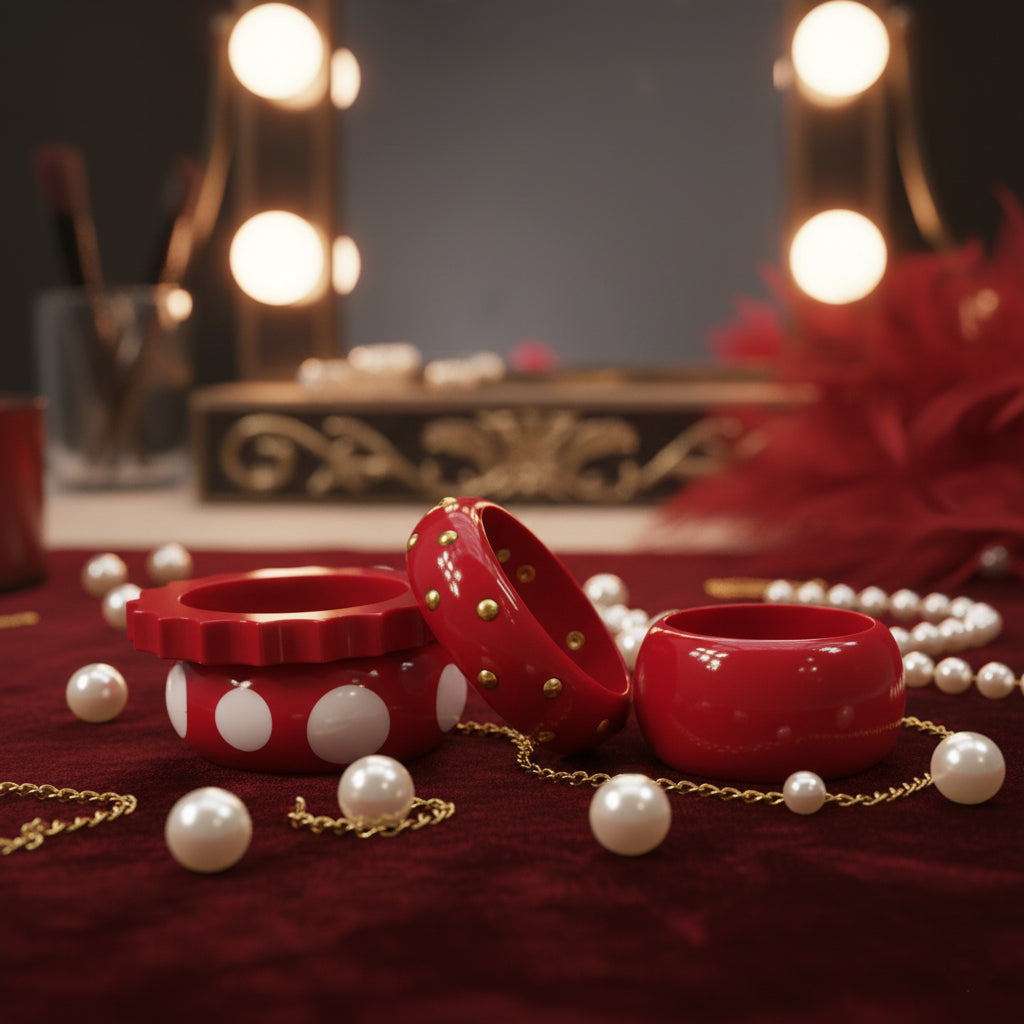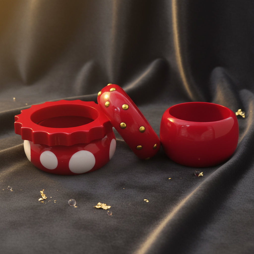 Pop Parade is pure joy in a stack — a set of 4 chunky resin bangles designed to make every outfit fun, bold, and unapologetically stylish. Featuring a playful mix of glossy, studded, ridged, and dotted textures, these bangles add instant energy and personality to your look. Perfect for those who love their accessories loud, confident, and full of character.